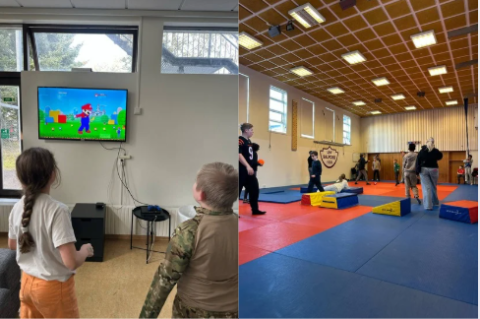 W każdą środę od godziny 14:00 do 15:00 chodzimy na salę judo, co zawsze sprawia nam wiele radości. Just Dance jest również bardzo popularne wśród nas — niektóre dzieci szczególnie lubią tańczyć i ruszać się podczas tej gry na naszym telewizorze. W naszej tęczowej sali zawsze panuje dużo życia i zabawy — rzutki, koszykówka, zabawy na dmuchańcu, gra na bębnach i muzyka to nasza codzienność. Sala zabaw w Kotið cieszy się dużą popularnością, ponieważ wiele dzieci może tam bawić się dostępnymi zabawkami przez cały dzień, co uważamy za naprawdę cudowne.