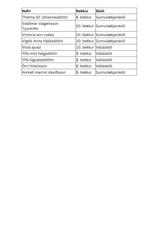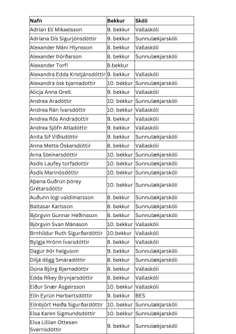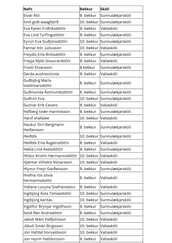 Nafnalisti yfir þau ungmenni sem fá miða á SamFestinginn 2024.